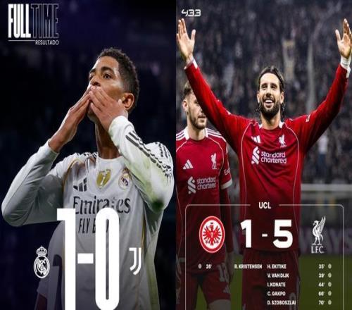 其中皇马主场1-0力克尤文,利物浦客场5-1法兰克福,总算终结各项赛事4连败,取得一场酣畅淋漓的大胜!