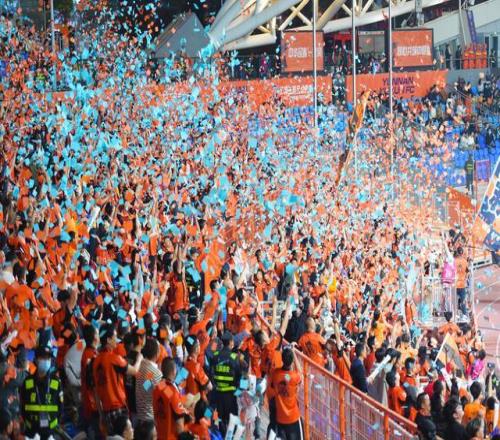 云南玉昆2:0战胜梅州客家,捍卫橙色荣耀,斩获中超三连胜。(沈阳 摄)
